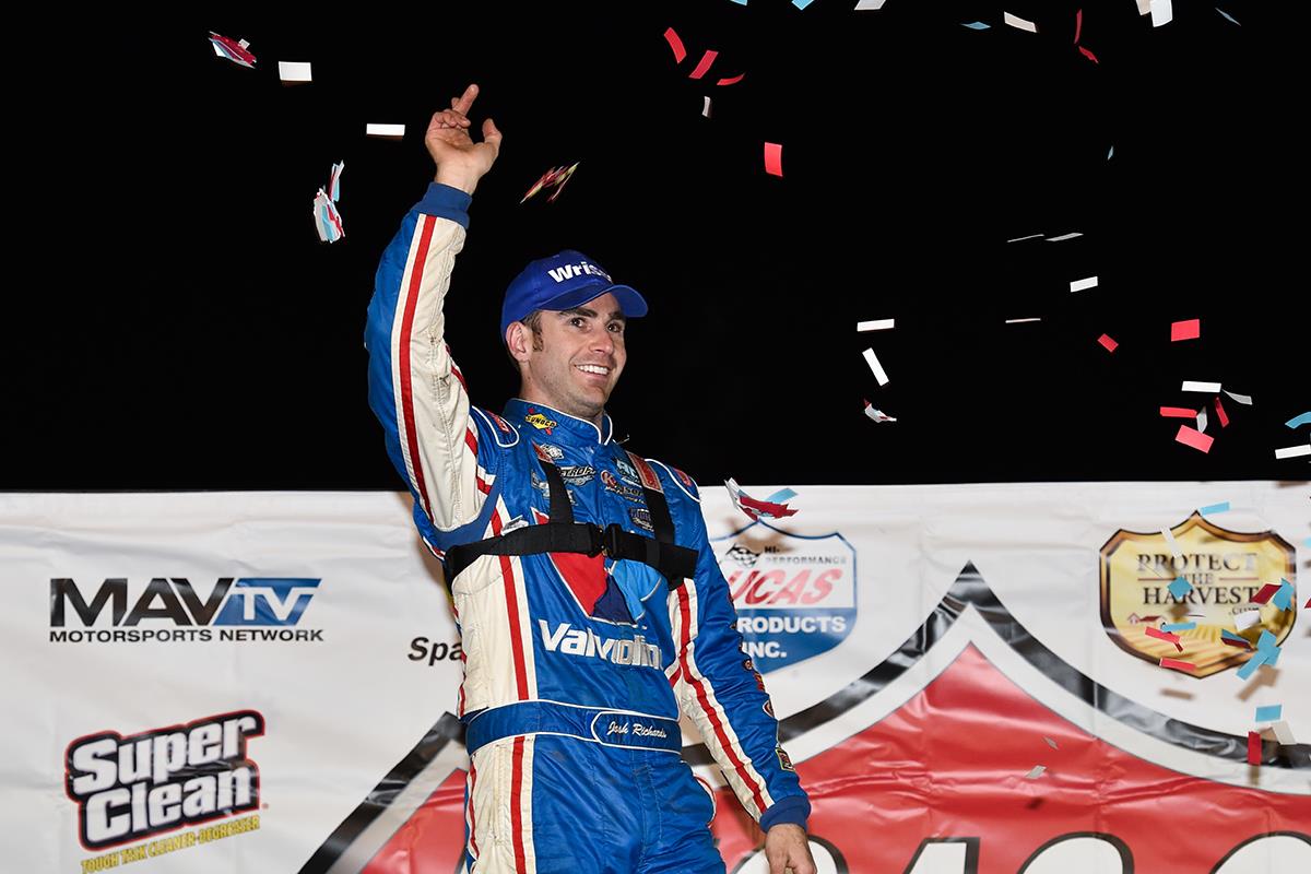 “We had a pretty decent car the whole race,” said 28-year-old Richards. I was concerned about tire wear tonight; I felt like they were giving up towards the end. When we got into traffic, we were able to run the top around those guys in clean air and a clean track, which sure helped us, because those running behind me didn’t have that advantage.”