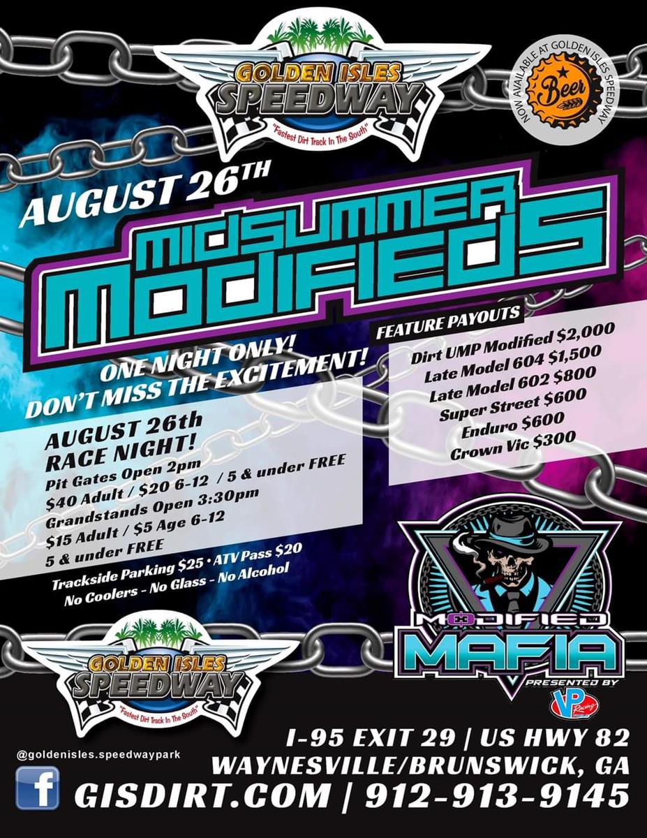Midsummer Modified at Golden Isles Speedway featuring the Modified Mafia Tour