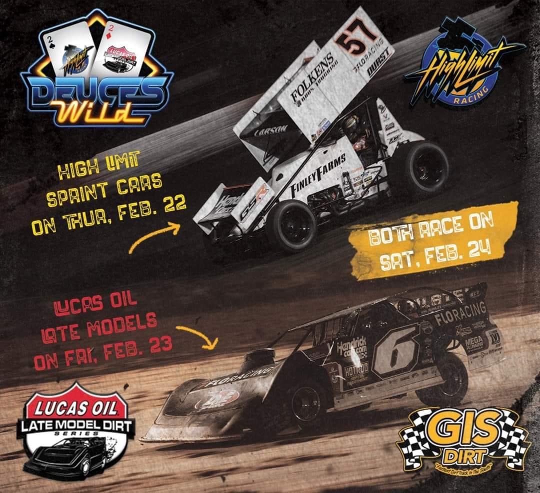 Next up - Deuces Wild Weekend , Feb 21-24 - High Limit Sprint Cars and Lucas Oil Late Models